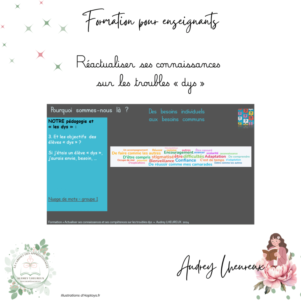 Accueil » Formation pour enseignants – Les « dys »Formation pour enseignants – Les « dys »par Audrey Lheureux Laisser un commentaire Annuler la réponseVotre adresse e-mail ne sera pas publiée. Les champs obligatoires sont indiqués avec *Nom * E-mail * Site web Commentaire * Enregistrer mon nom, mon e-mail et mon site dans le navigateur pour mon prochain commentaire.